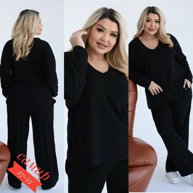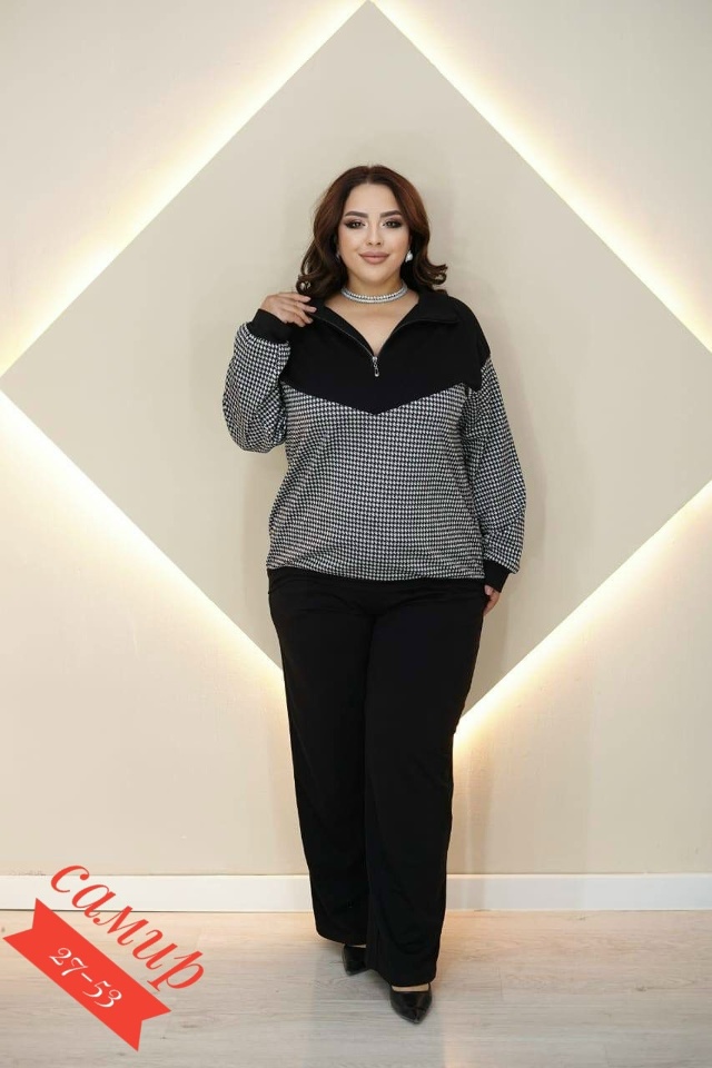 Разнообразный ассортимент женских футболок, блузок и костюмов больших и стандартных размеров.