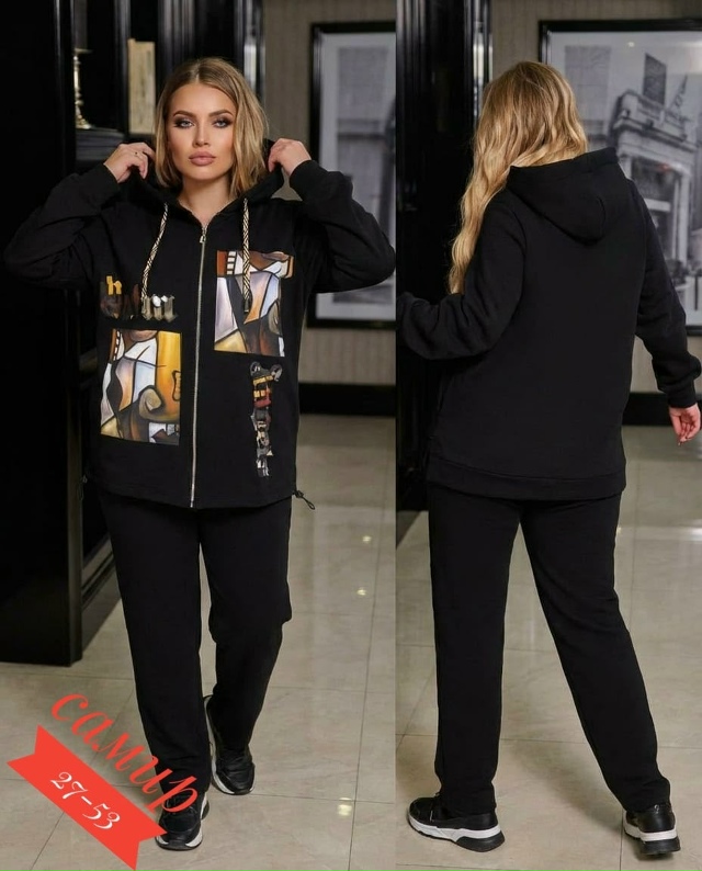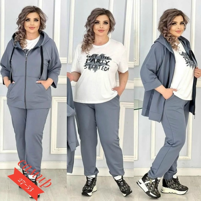 Разнообразный ассортимент женских футболок, блузок и костюмов больших и стандартных размеров.