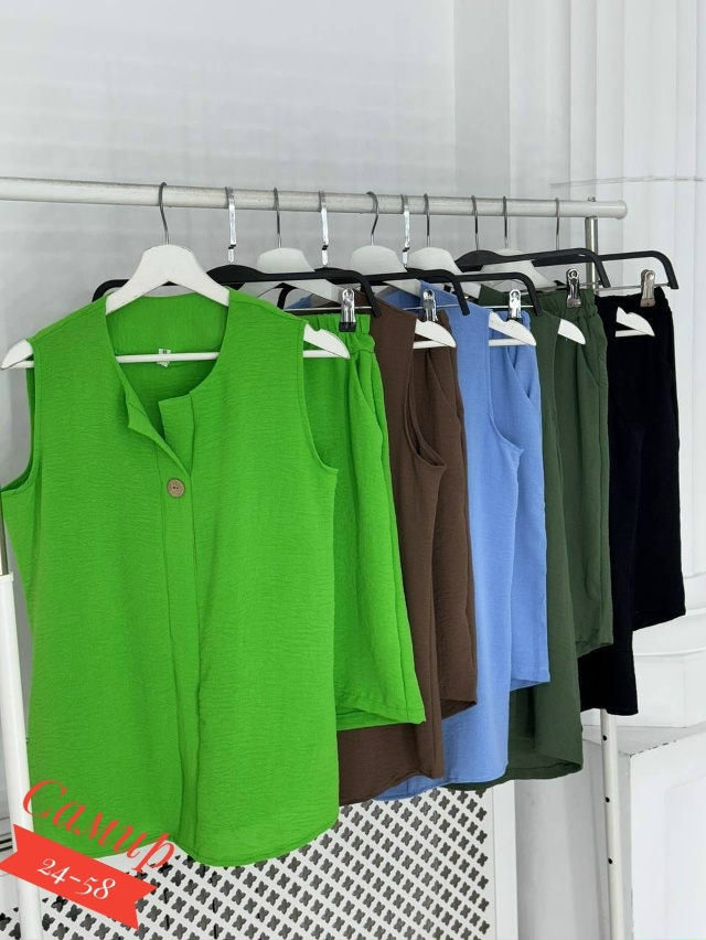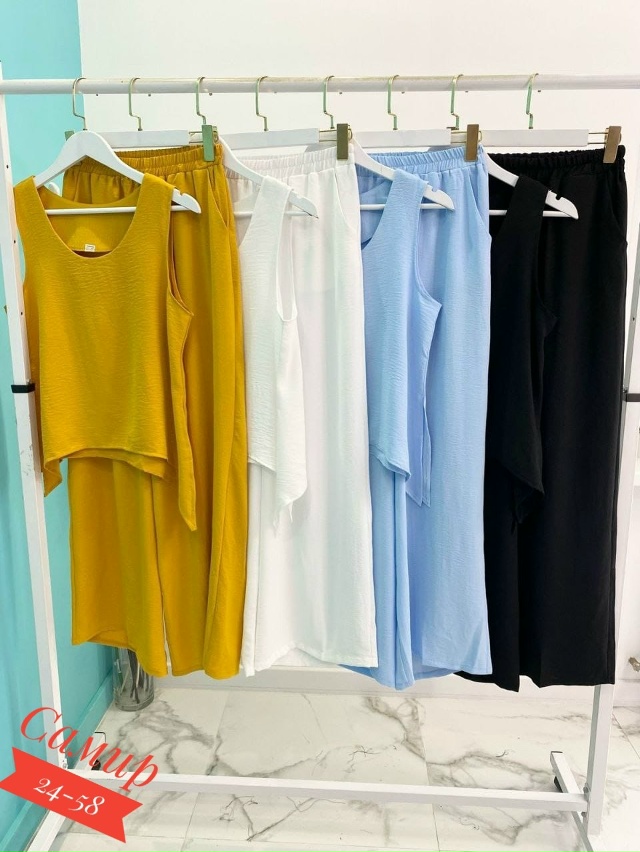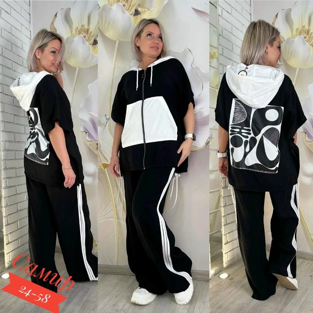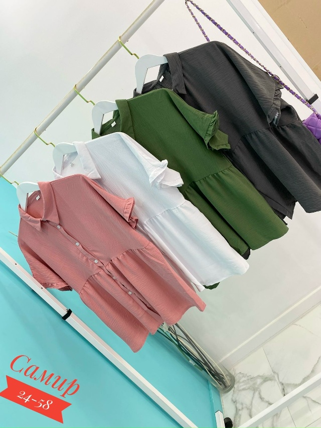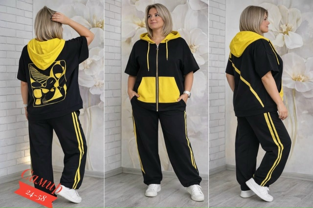 Разнообразный ассортимент женских футболок, блузок и костюмов больших и стандартных размеров.