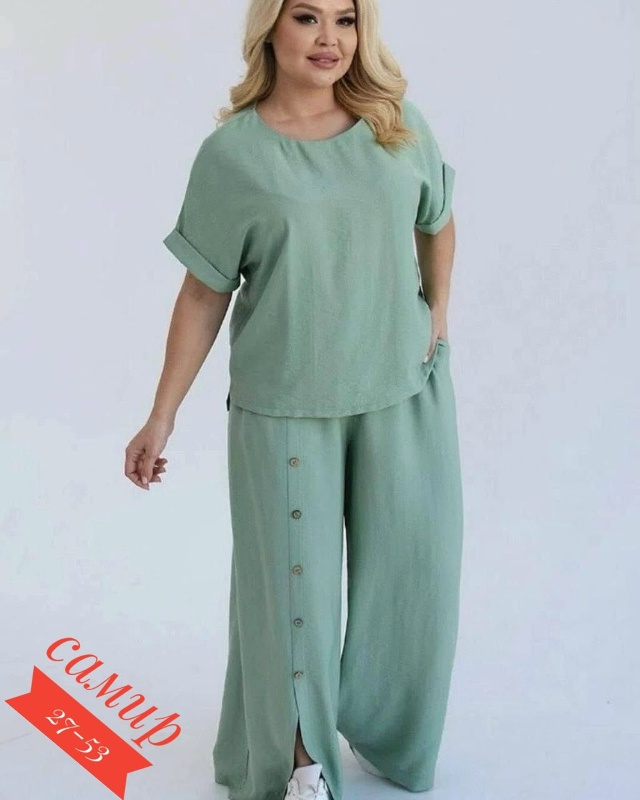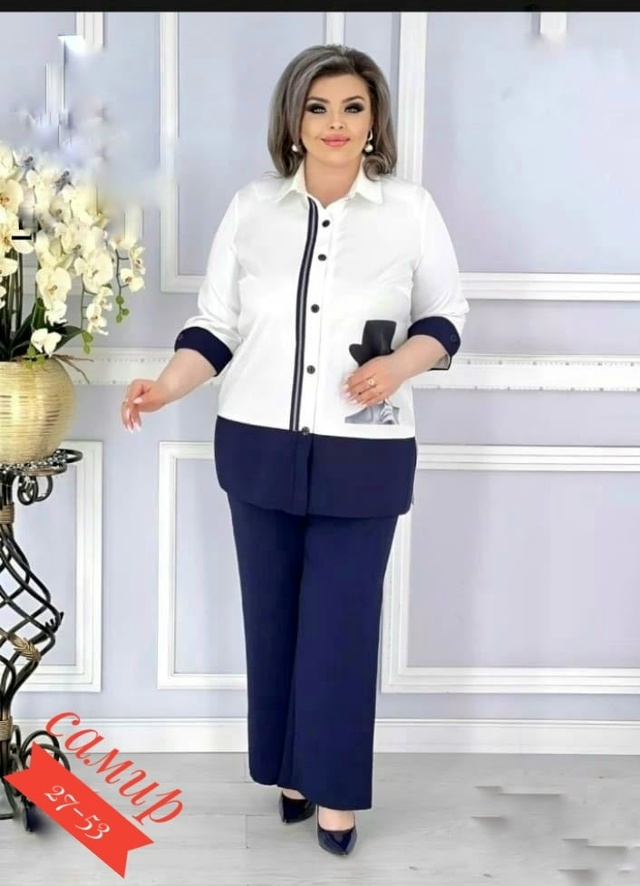 Разнообразный ассортимент женских футболок, блузок и костюмов больших и стандартных размеров.