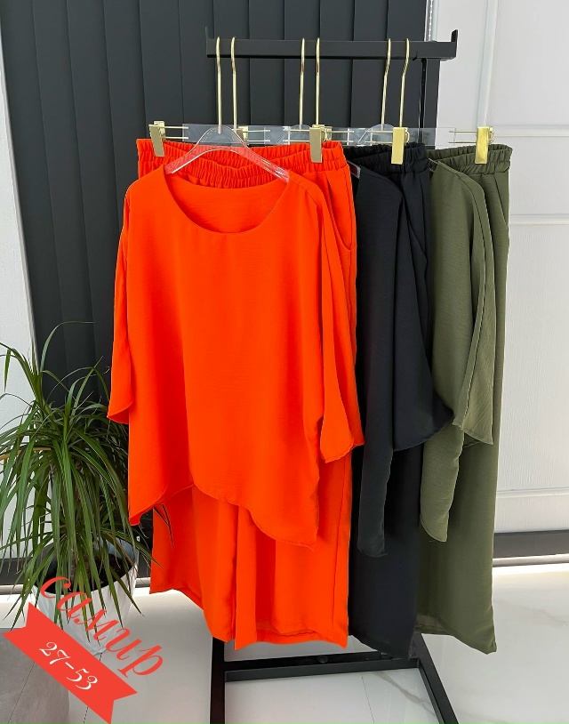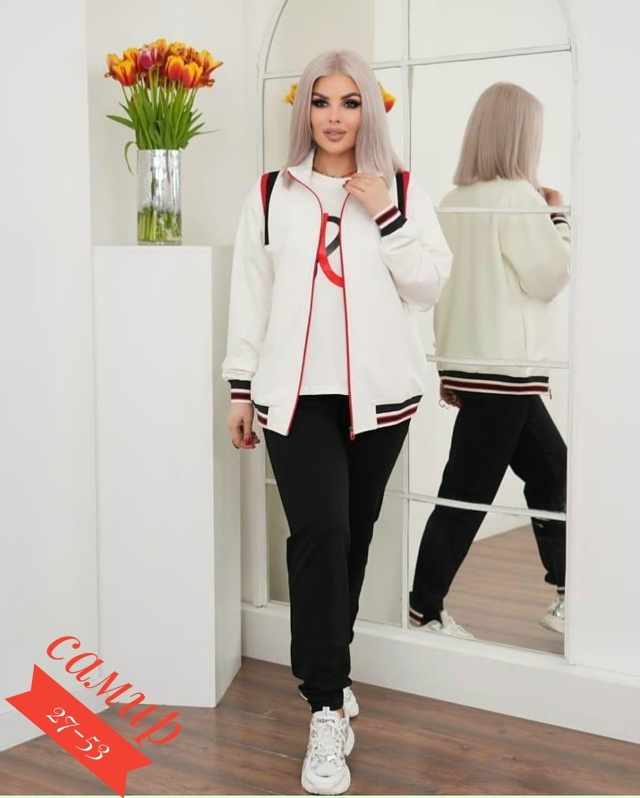 Разнообразный ассортимент женских футболок, блузок и костюмов больших и стандартных размеров.