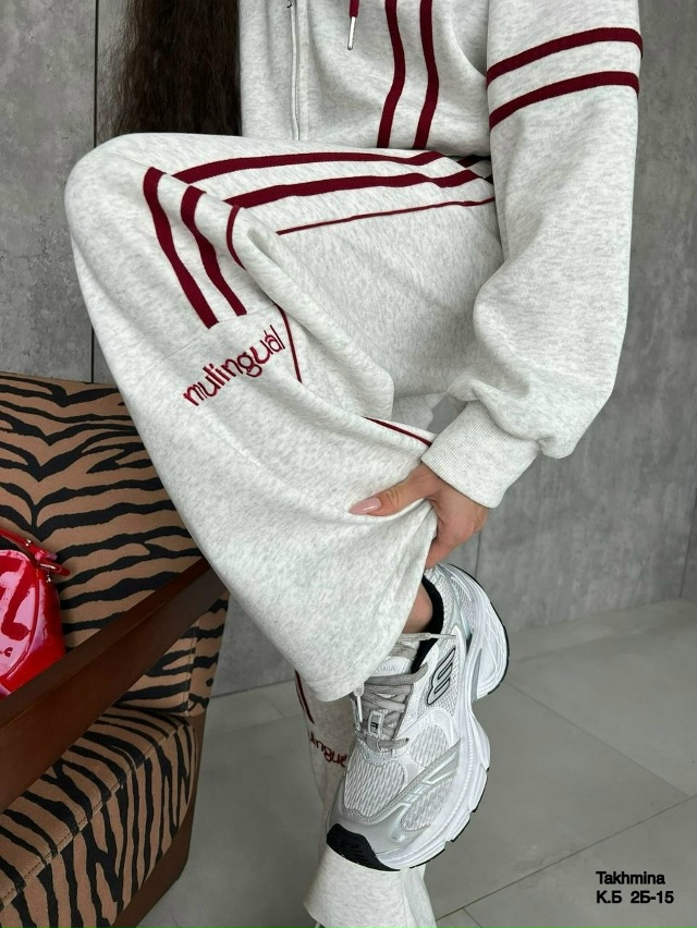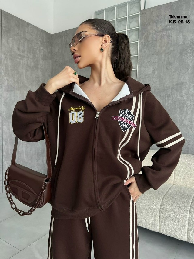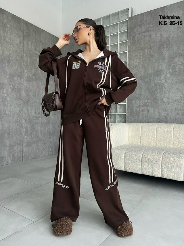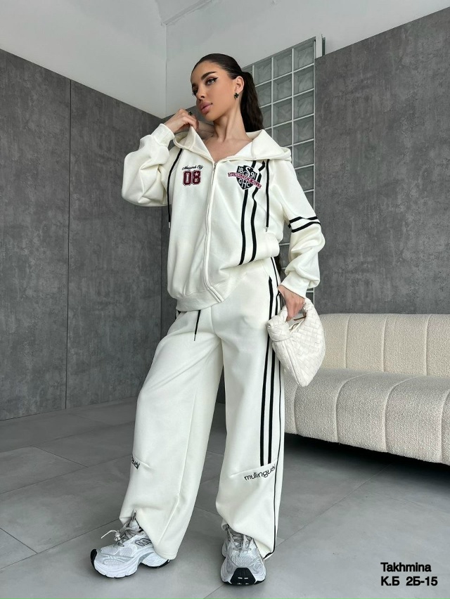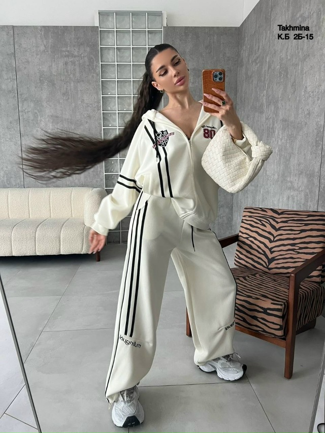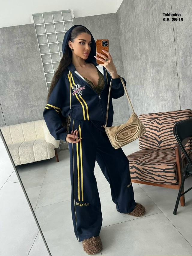 Спортивный костюм— это идеальный выбор для активных женщин, ценящих комфорт и стиль. Костюм выполнен из приятного на ощупь материала состоящего из хлопка обеспечивает мягкость и свободу движений. Ткань: Джинса